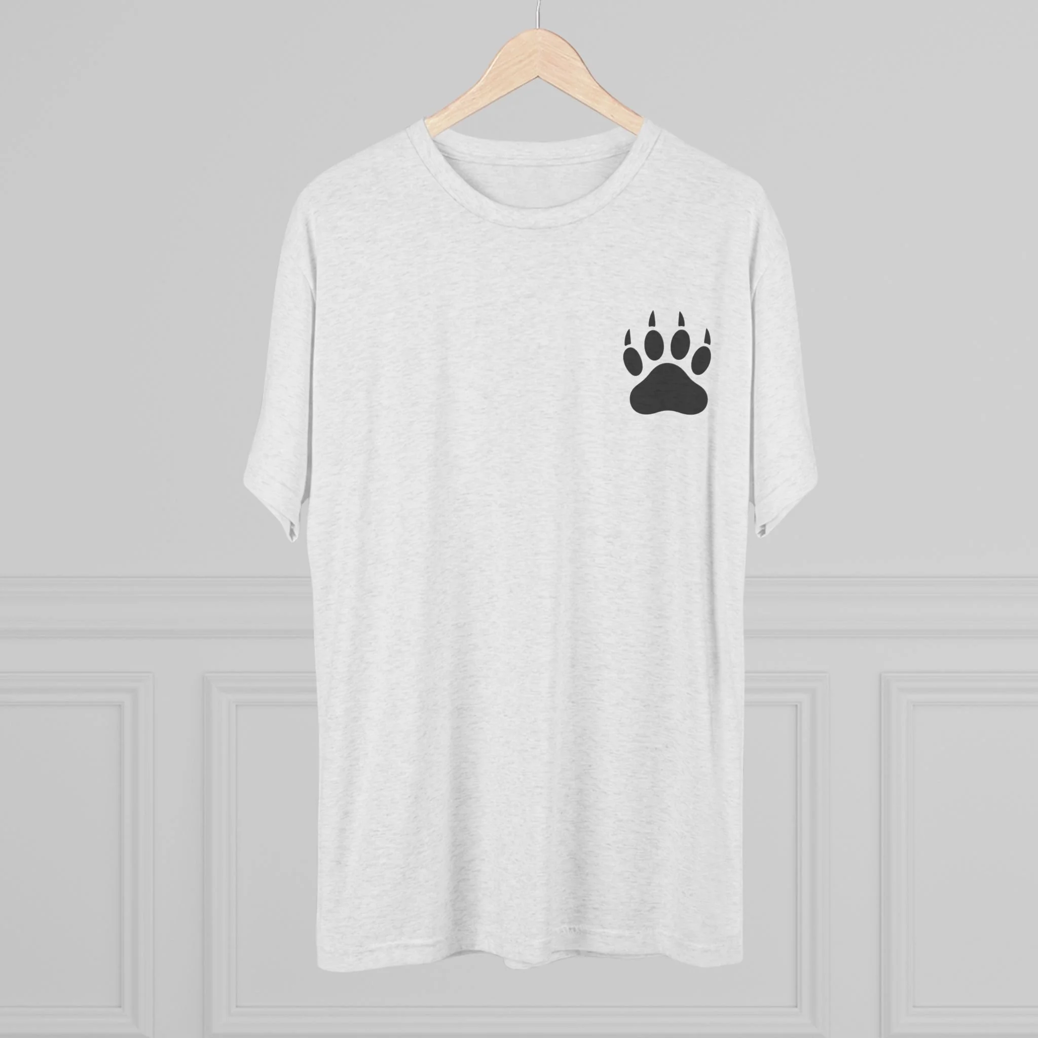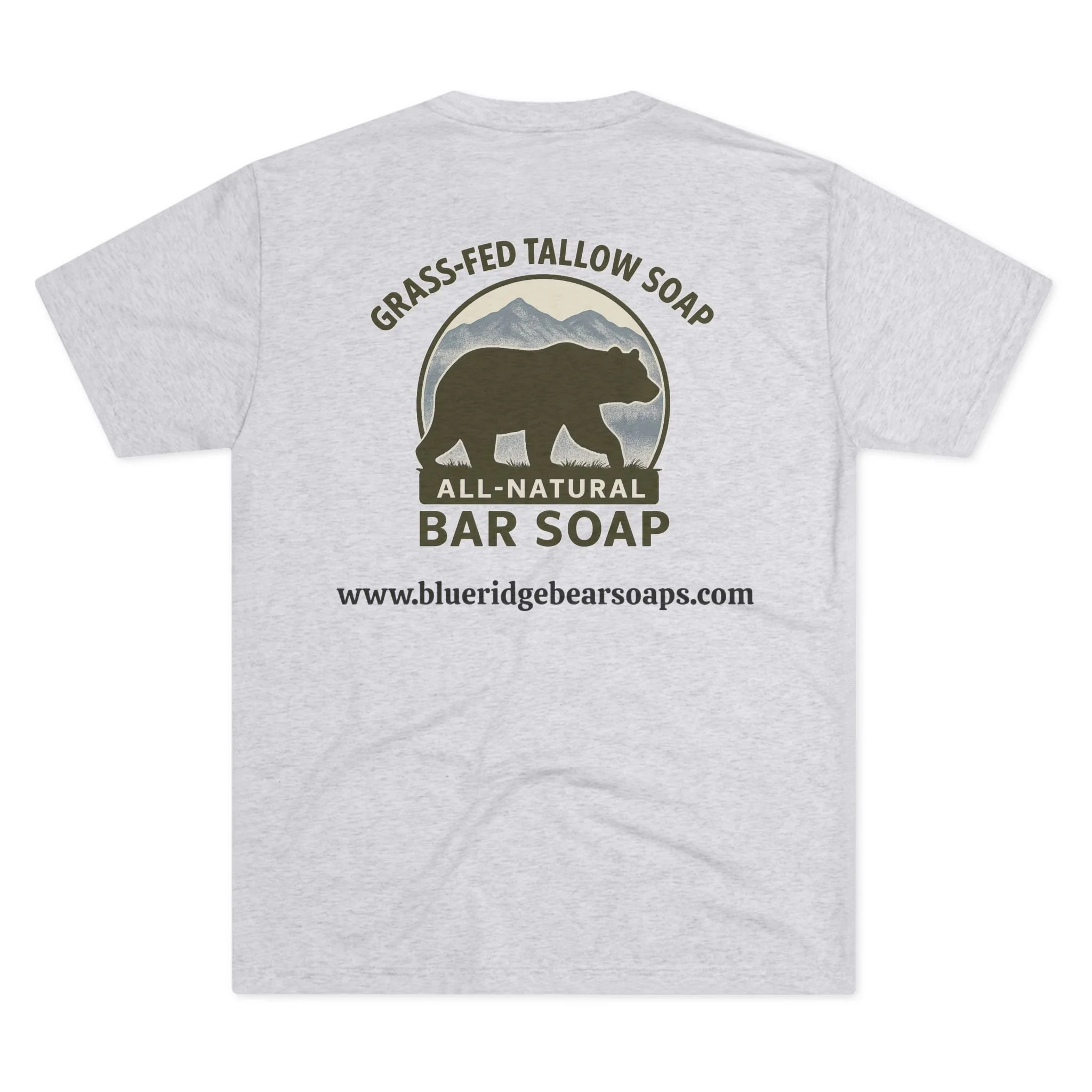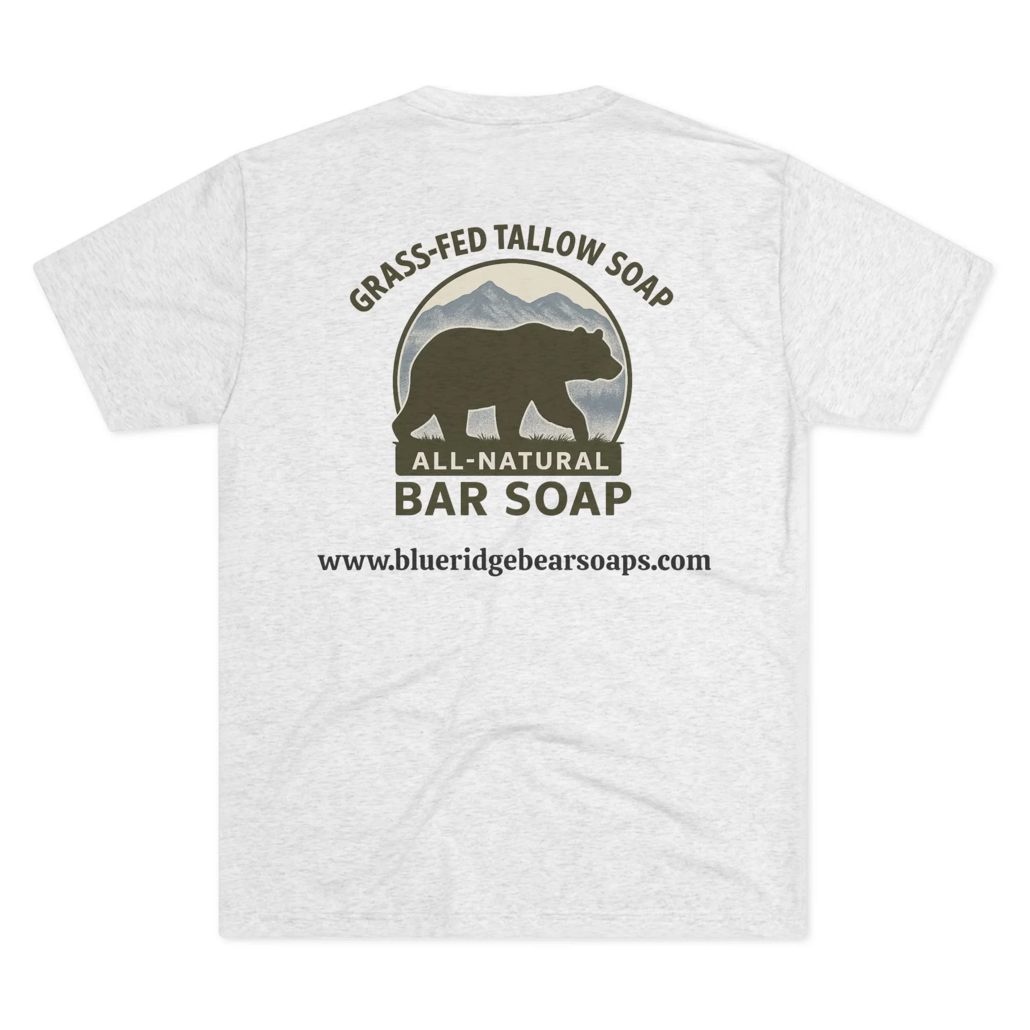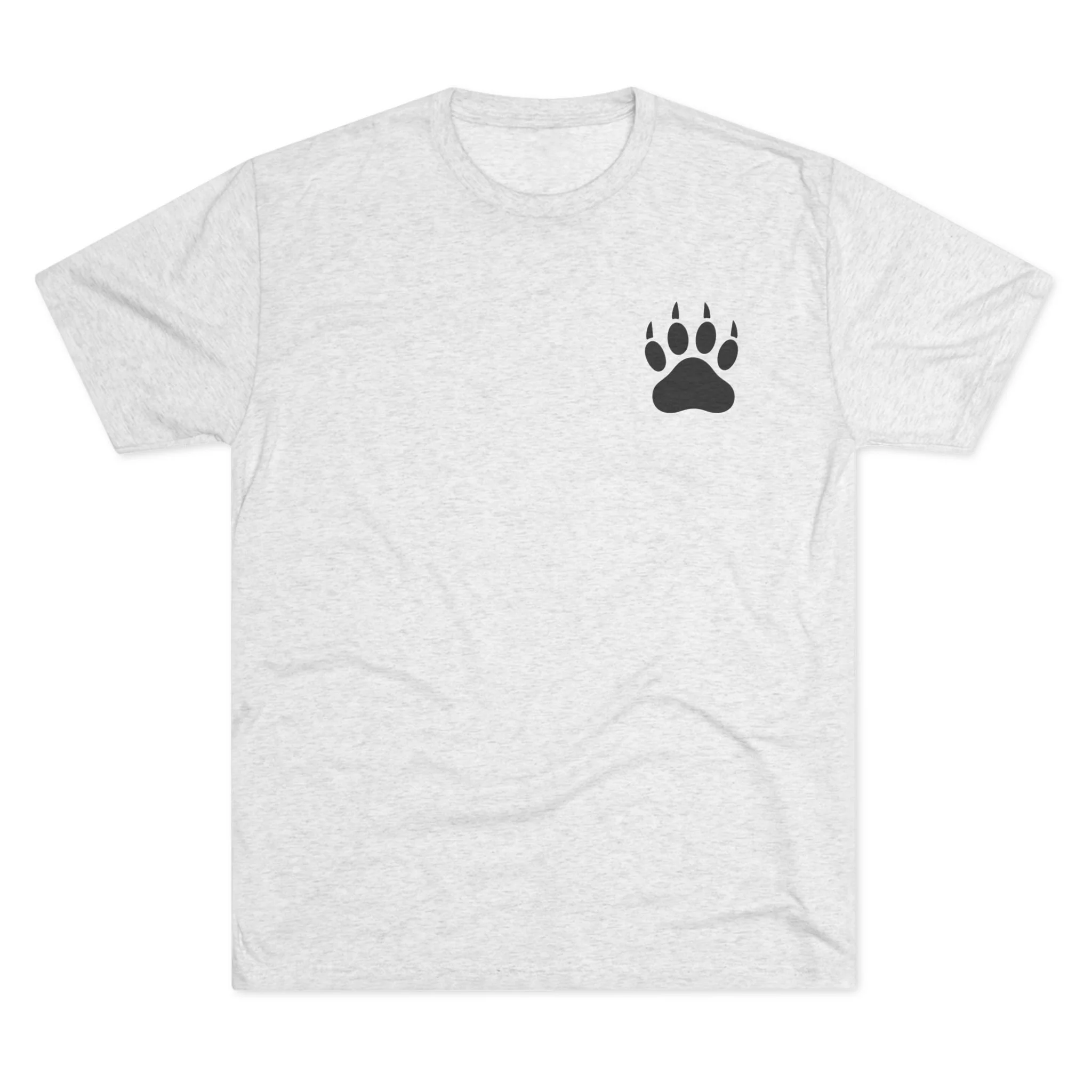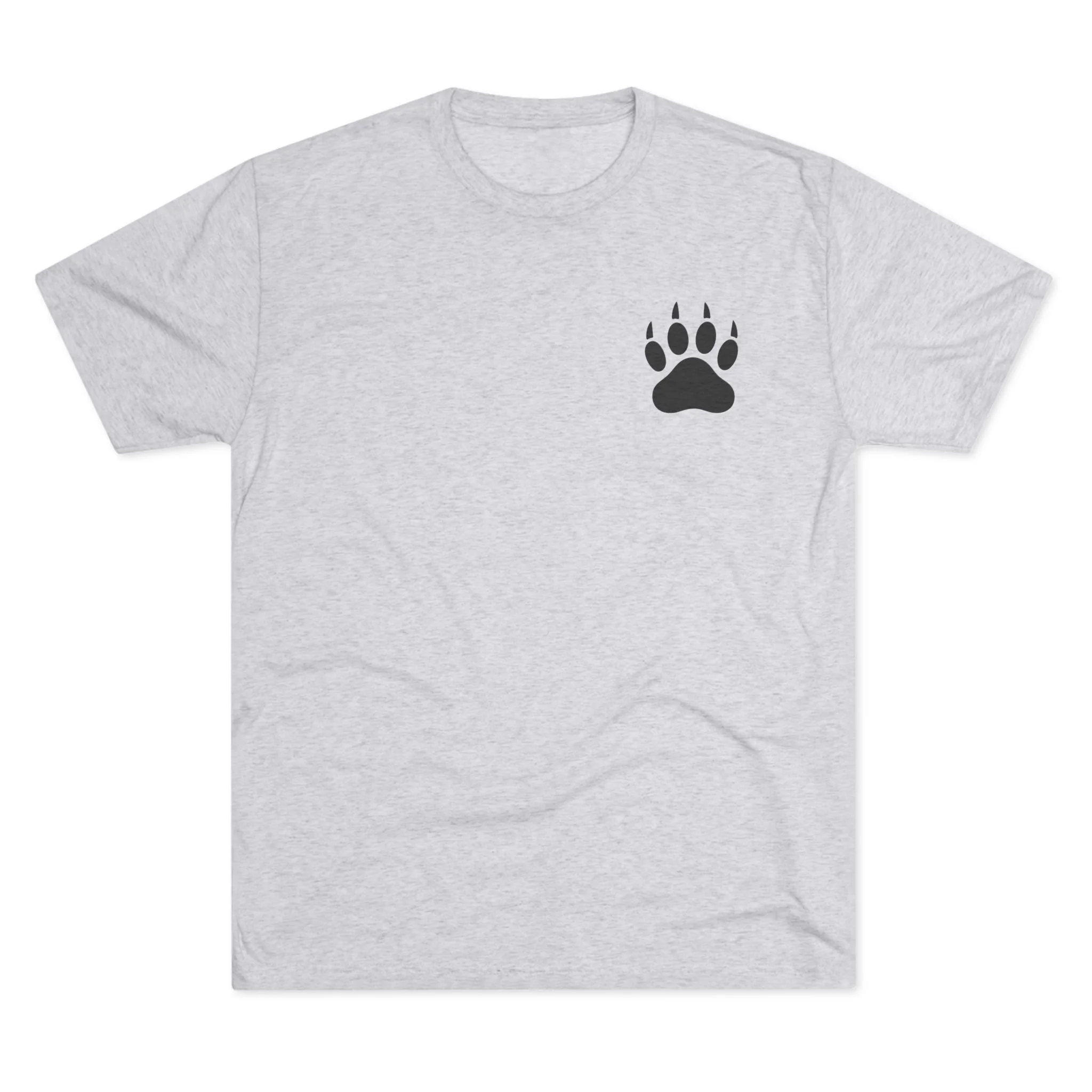 This lightweight crew tee brings a quiet, outdoorsy spirit to everyday wear. Soft tri-blend fabric drapes comfortably and moves with you, while a small bear paw at the chest and a bold wilderness logo on the back speak to a love of trails, timber, and handcrafted goods. It feels lived-in from the first wear — breathable for warm days, layered easily when it cools. Wear it after a morning hike, around a soap-making table, or out running errands; the design reads like a nod to slow craft and nature-minded living rather than loud branding.